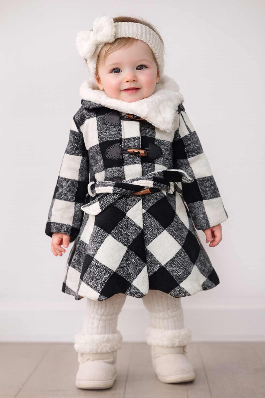 Abrigos de niña de paño de cuadros con el cuello con pelito, el pelo es desmontable. Lazo en la espalda y cinturón. Es ideal y tiene un precio super irresistible.