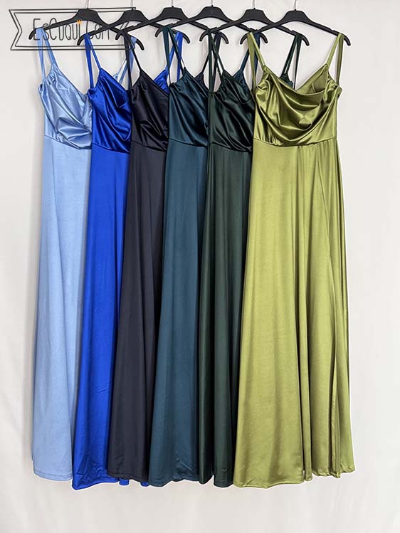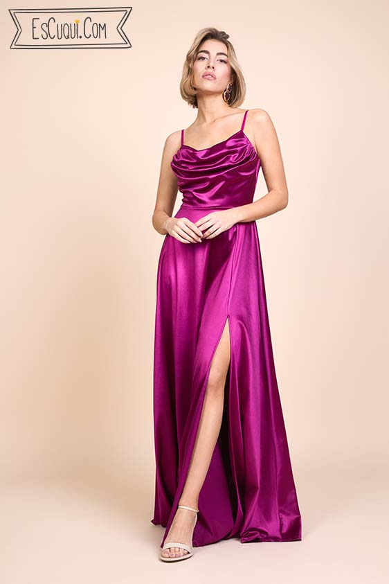 Vestido largo de fiesta de tejido satinado con la parte de la falda con mucho vuelo, ¡es ideal!